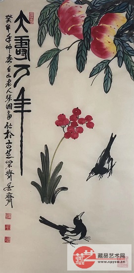 2023年3月4日张国富原创写意作品《大寿万年双喜临门图》 半生半熟仿古宣