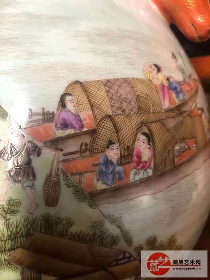 粉彩描金全景“村乐图”鹿头尊(局部细节)