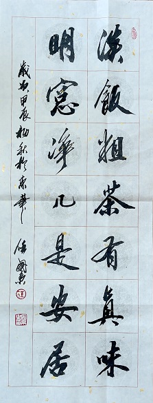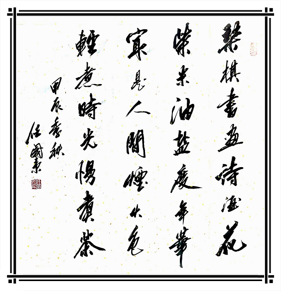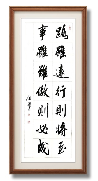 任国京自幼习书四十余年。嗜书如醉,书之变化其自然,灿然隽秀与庄静显现于今。其书法得“道”得法,继承古人之法度,有法而自然,师古不泥,秀美洒脱,尽显深厚的书法功力。