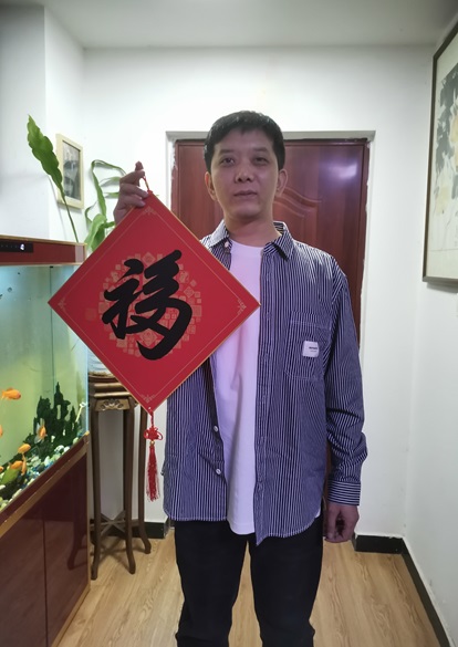 奚卫平先生与著名书法家韩山林老师书写的“天道酬勤”卡纸书法作品 2025年1月12日,秦皇岛青硕传媒创办人奚卫平一行来将士丰采书画院开展文化交流,先后在藏品艺术网、将士丰采书画院北京丰台工作室和北京经开区工作室参观,藏品艺术网总编辑、将士丰采书画院院长王景轩接待客人一行。北京市检察院原副巡视员、将士丰采书画院书法家李成栋先生与吉林油田公司党委宣传部原副部长、书法家张旭臣先生参加交流。 奚卫平先生和书法家赵艳彬老师书写的“福”字卡纸挂件作品 在将士丰采书画院北京经开区工作室,王景轩代表藏品艺术网和将士丰采书画院,向青硕传媒赠送一幅由将士丰采书画院顾问、著名书法家韩山林先生创作的《天道酬勤》卡纸斗方书法作品和一幅由藏品艺术网书画艺委会会员、北京丰台区书法家协会会员赵艳彬女士书写的卡纸挂件福字作品礼品。