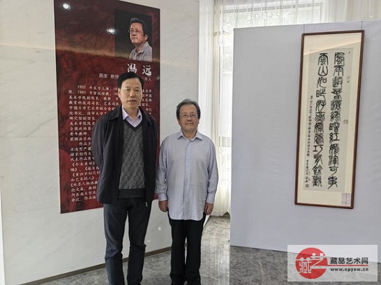 金思宇(左)与中国文联副主席、中央文史馆副馆长冯远(右)合影