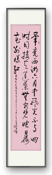 张冠群先生运笔如刀,在宣纸上镌刻出季节的辩证美学——杜荀鹤“灭得心中火”的禅意以枯笔飞白呈现,李白“裸袒青林”的狂放则化作连绵草书。特别值得注意的是其对宋伯仁“十里荷塘”的诗性转化:通过涨墨技法使"数点沙鸥"在墨晕中若隐若现,恰与现代视觉艺术中的负空间理论形成跨时空对话。