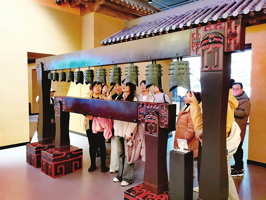 1月14日,游客在长治市博物馆新馆中参与体验项目。 本报记者王少杰摄