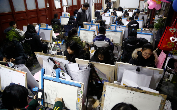 ▲一家美术艺考培训班的考前冲刺集训(东方IC/图)
