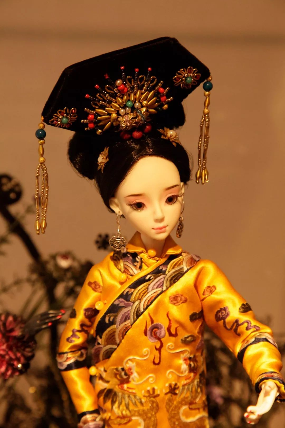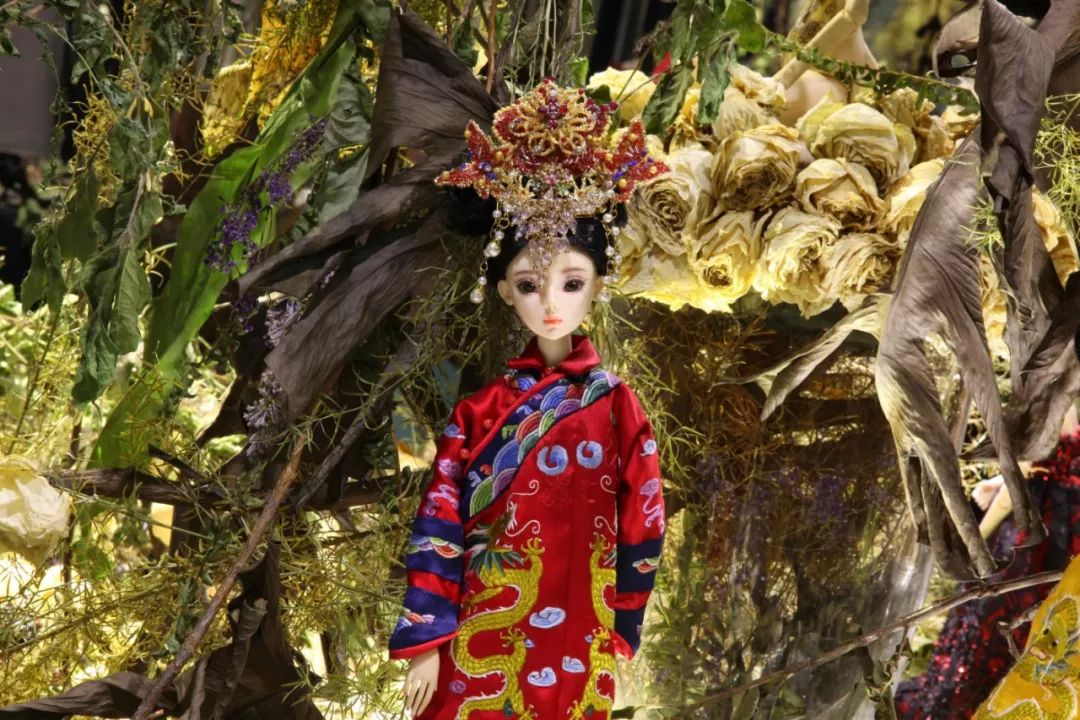 房间的一角是她做的数个天使艺术娃娃作品,各自在玻璃柜里或立或卧,眉目间有细腻的表情,在各种刺绣、钉珠、甚至缂丝的华服中,流露着各个时代的惆怅与远思。