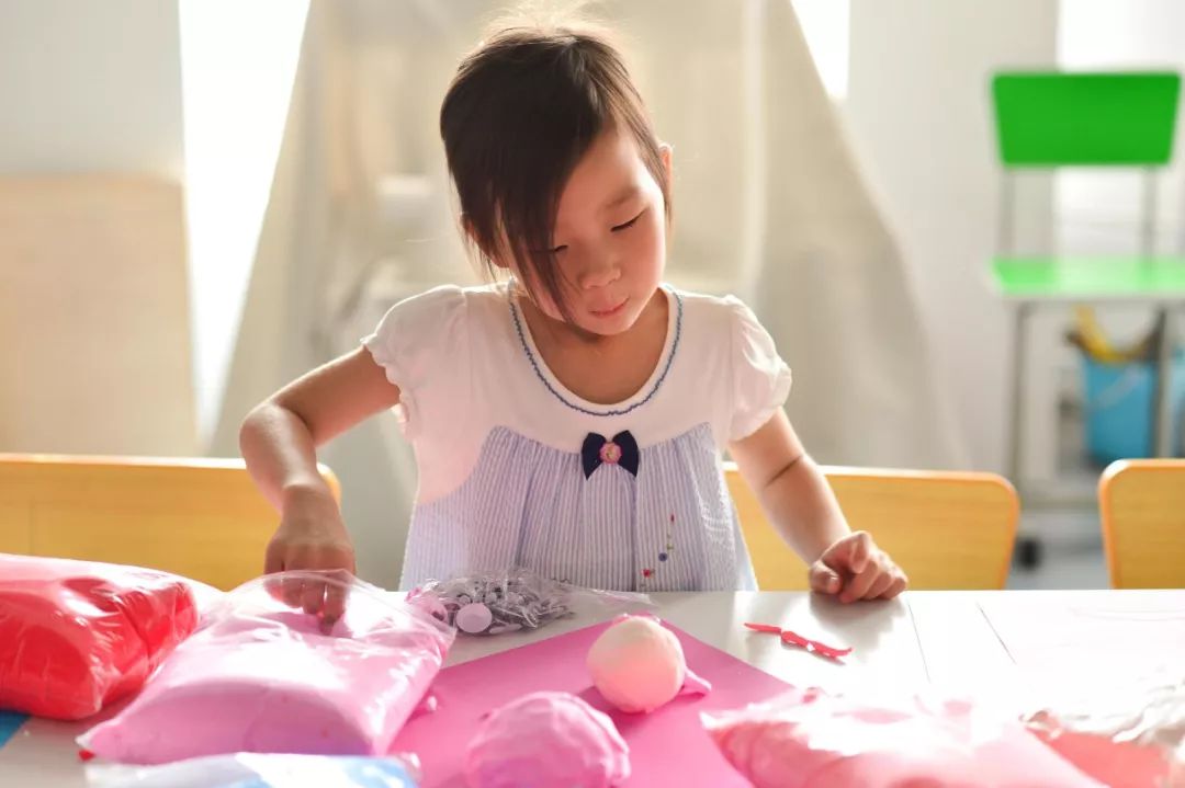 所有的色彩都铺在桌上了——水溶铅笔、油画棒、彩泥、各种材质的彩纸以及大大小小的毛绒球,如同宝藏一般丰盛地堆积着,你不知这些色彩会编织出一个怎样的幻梦。