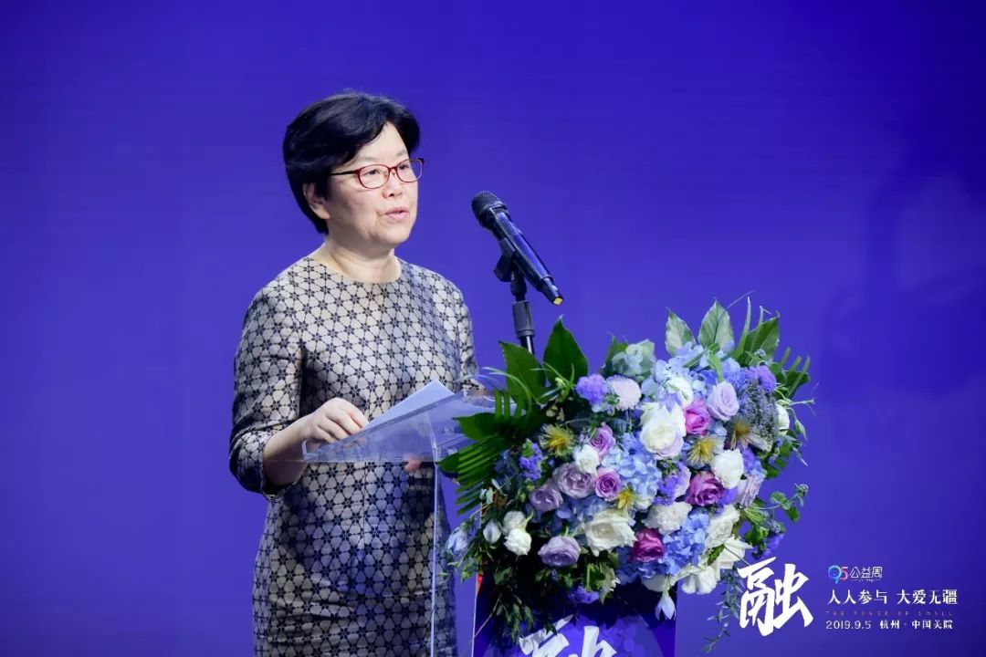 中国美术学院党委书记钱晓芳代表学校致欢迎词。她介绍了美院公益活动开展的情况与取得的成绩。她说,高校是公益慈善事业的受益者,是公益慈善文化的培育地,更是公益慈善的行动者。中国美术学院始终坚持与人民同呼吸、与祖国共命运,引领师生把握时代发展脉搏,走进社区、深入乡村、扎根基层,用学科专业反哺社会需求,用“以爱育爱,以美传美”的精神和行动,向社会传递专业之美和国美人的价值观、正能量。中国美术学院期待与广大公益慈善组织、企业和爱心人士展开合作,更加广泛深入地参与公益事业,汇聚公益力量,共创新时代中国公益慈善事业新成就。