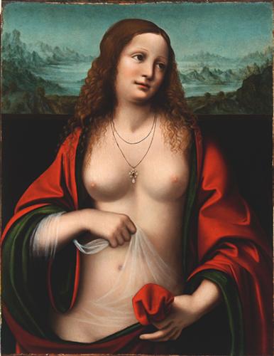 展出的《抹大拉的马利亚》,标注作者为达·芬奇(传)和助手(马可·达·奥焦诺?)。央美美术馆供图