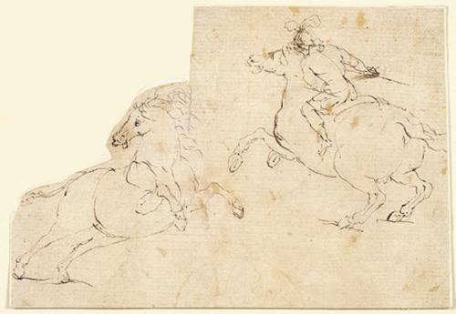 展出的《为“安吉亚里之战”所绘习作》,现场标注作者为达·芬奇。央美美术馆供图