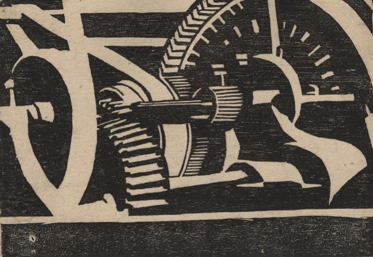 张世光《机器》,黑白木刻,20.6×14.6 cm,1934年