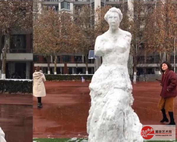 在众多的作品当中,有一个格外引人注目,那时一个大型的雪雕,造型是知名雕像“维纳斯”。这个作品接近两米高,各个特征非常到位,除了一些小的瑕疵之外挑不出什么大的毛病。据了解,它的作者是一名美术学院雕刻系的男性学生,用了接近两个半小时才完成了这件作品。该学生在雕刻时一丝不苟,高处还要踩着板凳进行作业,用上了数件小工具,这才让这个冰雪维纳斯如此的引人注目。