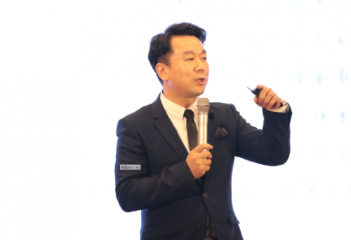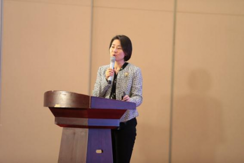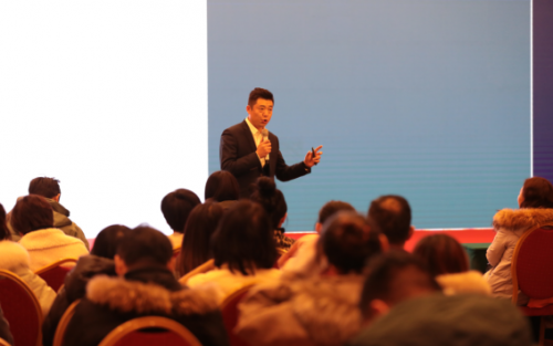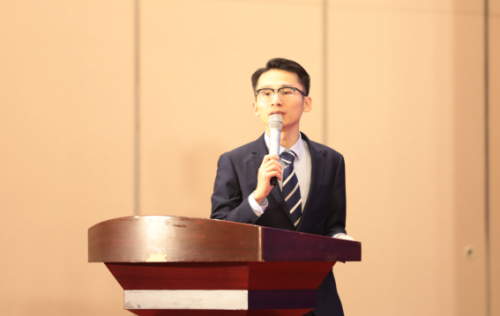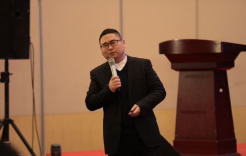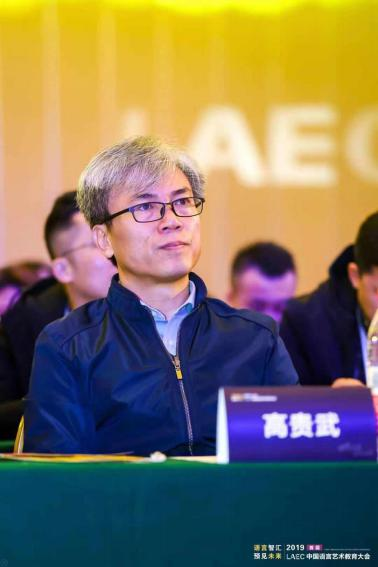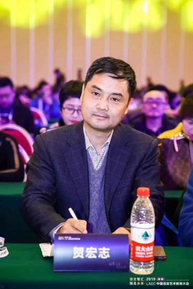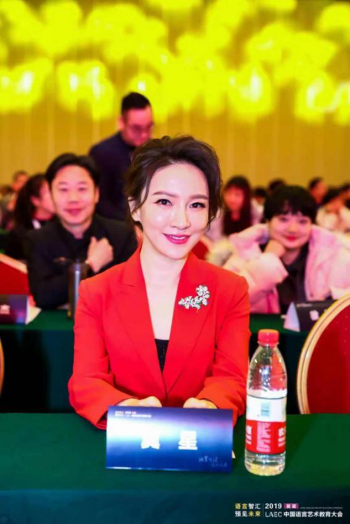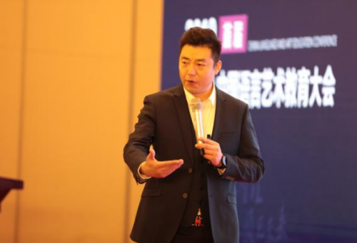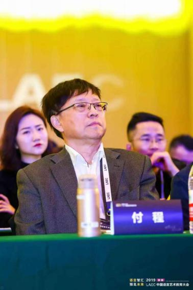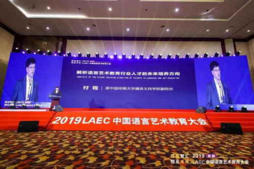 原中国传媒大学播音主持学院副院长付程上台演讲《解析语言艺术教育行业人才的未来培养方向》