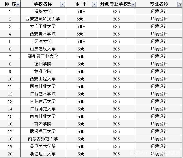 环境设计专业前五名分别为:清华大学美院、西安建筑科技大学、大连工业大学、西安美术学院和天津大学。这也是该专业唯一的5所五星级+类大学,而八大美院在其中只有西安美院占据一席之地,只有清华美院、西安美院需要校考。