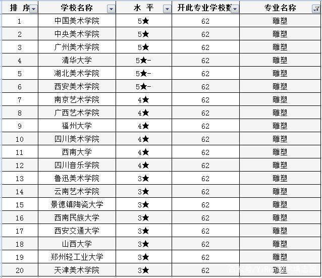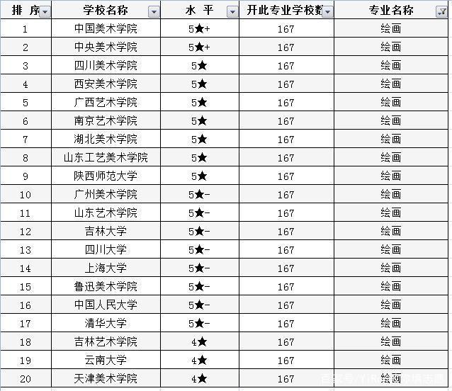 从该专业前20名排名来看,四川美术学院、广州美术学院、天津美术学院、南京艺术学院等美术类专业强校都没有进入,综合类高校占据半壁江山,值得美术生们填报志愿时深思。