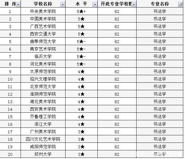 书法学专业排名前三的是中央美院、中国美院和广西艺术学院。另外民营的“第九大美院”之河北美术学院的书法专业还是极具竞争力的存在。