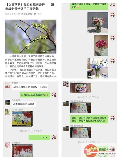 临朐县东城街道文昌小学立足当前疫情,组织全校艺术教师自主精心开发校本课程。在疫情防控面前,学校结合上级文件通知精神,严格落实“停课不停学”要求,遵循动静结合的原则,指导学生居家学习与艺术欣赏、传唱经典、感恩教育、手工制作、艺术课程与生命课程有机结合,培养孩子们的感恩意识与艺术修养,激发广大师生爱党爱国爱人民爱社会主义的思想情感。文昌艺术教师积极行动起来,认真指导学生居家艺术学习,引领学生全面发展。
