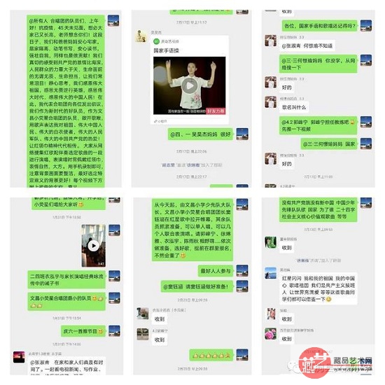 美术教研组发挥团队作用,每位美术教师积极自主开发适合每个年级的课程(非教材课程,教材开学后从头学,讲解教材时间就开学时间随时调整)根据学校课程表安排,进行网络直播,另外每个年级建立一个美术工作群,教师不定时分享美术课程,同时就学生分享的美术作品进行点评。