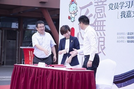 启动仪式上,上海工艺美院与菊园新区、上海雅昌艺术印刷有限公司共同签署了《菊园新区区域党建共建协议书》,并与相关院校、文化机构等正式挂牌首批高校、专业机构相关合作项目。