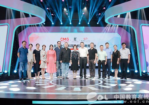 仪式上,杨立平、高峰、时间、景志刚、沈小炎、许伟共同为中央新影长三角少儿科学艺术实践教育基地揭牌。长三角地区40余家知名少儿教培机构获得授牌,将成为新一批“长三角少儿教育联盟”理事单位,并与基地结成合作共建关系。来自台州方梁语言教育的小主持人还表演了精彩的节目。、