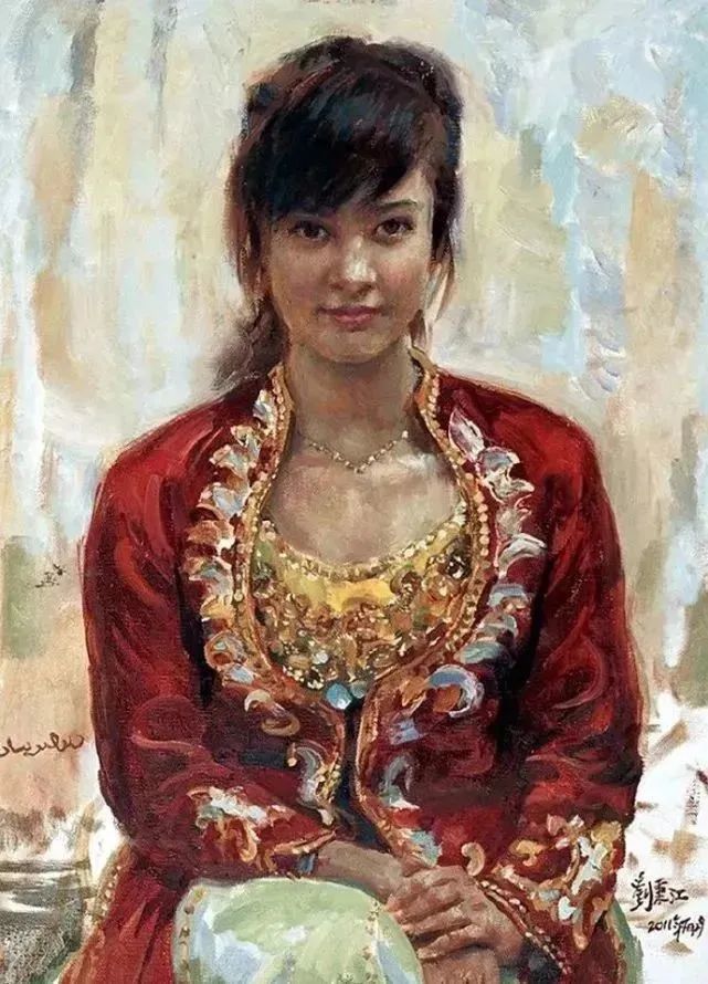 刘秉江是一位为中国油画民族化作出卓越贡献的实力派画家,他早年接受的是学院写实风格油画的严格训练,练就了一套造型扎实、结构准确、形象传神的过硬功夫,他善于用富有肌理效果的色彩与笔触塑形,并有分寸的引入平面装饰的语言,减弱了体积感,增强了平面构成意味,突出了现代的韵律节奏与厚重绚丽的色彩组合因素。