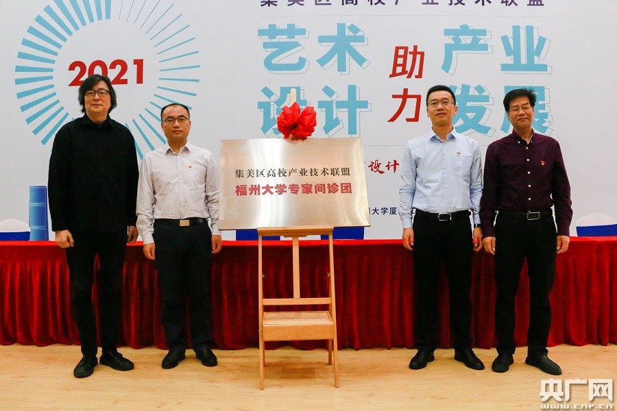 会上,福州大学工艺美院院长李超德致欢迎辞并以《艺术设计助力产业发展》为题作主题分享。厦门市委组织部、集美区委组织部、福州大学厦门工艺美术学院的领导一同为集美区高校产业技术联盟“艺术设计专家问诊团”揭牌。未来,问诊团将进一步帮助辖区企业优化设计创意、提升产品竞争力,同时,注重结合艺术专长,以“设计改造乡村、设计美化乡村、设计带动乡村”,为集美区乡村振兴战略插上艺术翅膀。
