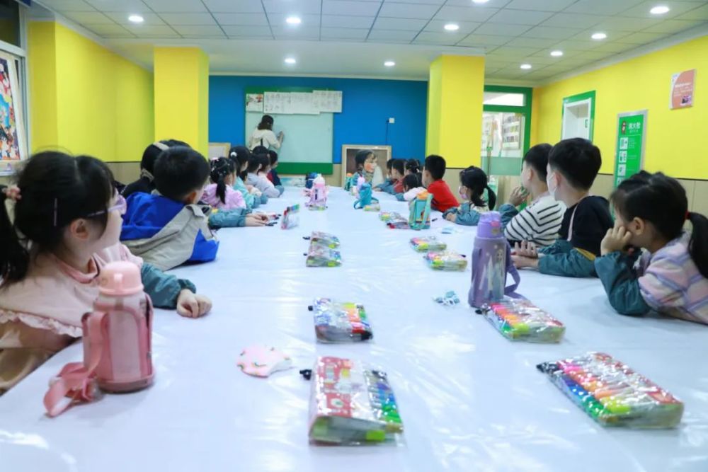 利用水彩笔和油画笔,在洁白的画纸上尽情涂画,这些代表心中所想的元素和图案,在他们笔下变成了一幅幅富有童心、色彩斑斓的图画。