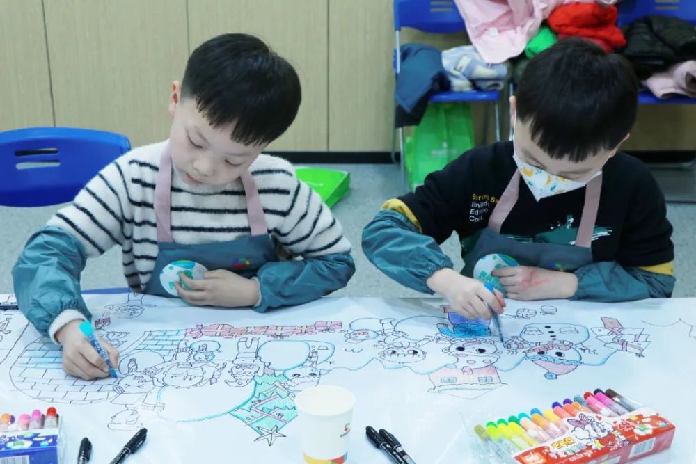 小朋友们迫不及待地开始在长卷上进行创作,互相交流讨论各种颜色的搭配,发挥奇思妙想,涂画属于自己风格的长卷。