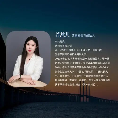 结语:若然儿以自己的艺术天赋和专业知识,创办了艺硕圈美育,为众多艺术生提供优质的考研平台和教育服务。她坚持将美育与教育相结合,通过艺术与文化教学,培养学生的审美情趣和创造力。同时,她积极参与公益事业,回馈高校,报答社会,为更多学生提供机会。若然儿对于教育事业和美育事业有着深刻的理解和远大的愿景,相信在她的努力下,艺硕圈美育将继续发展壮大,成为中国艺术考研界的领军品牌。