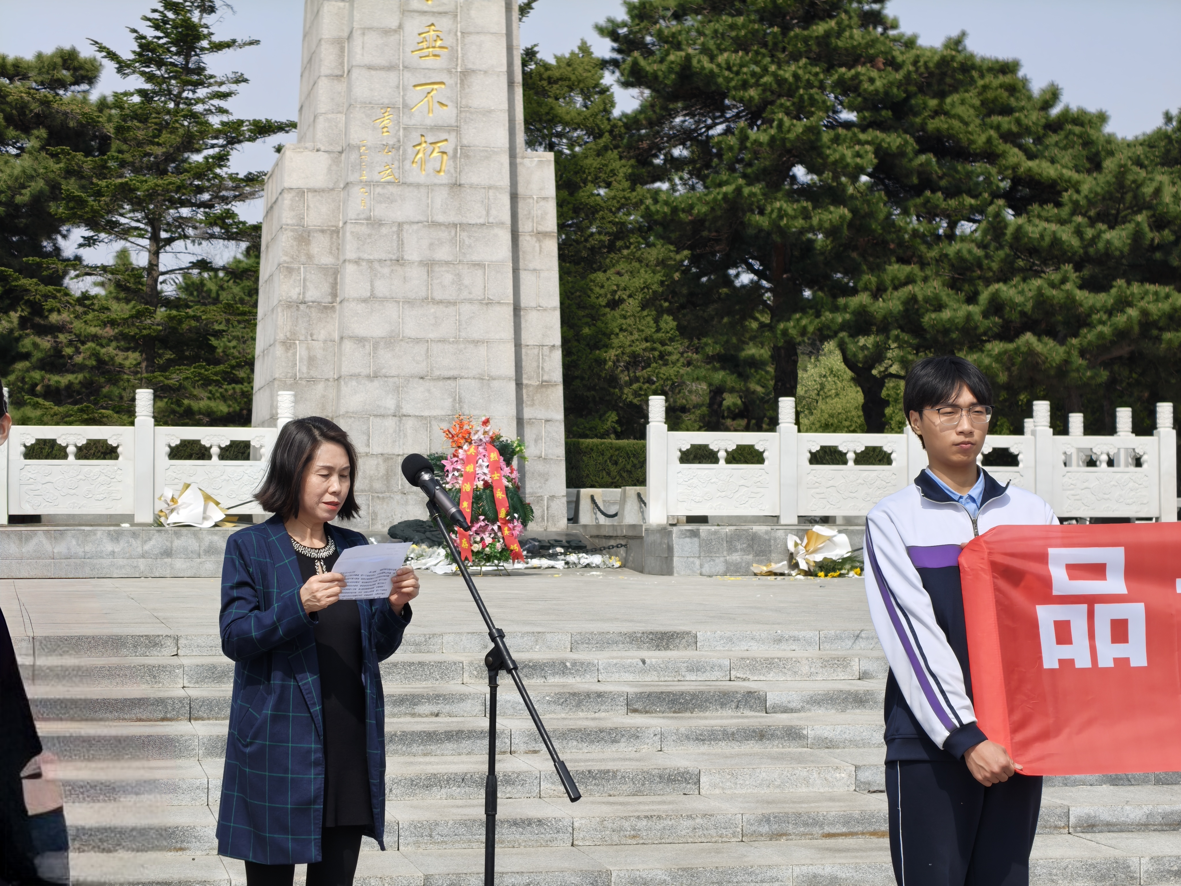 为缅怀革命先烈,传承红色基因,大力弘扬爱国主义精神,引导学生坚定理想信念、传承优良传统,4月23日,我校组织新入团团员和团校学员百余人前往抗美援朝烈士陵园,以“品读历史回响,赓续民族血脉”为题开展主题教育活动暨新团员宣誓,在庄严肃穆的仪式中唤醒民族共同记忆,于血脉传承里筑牢家国情怀。