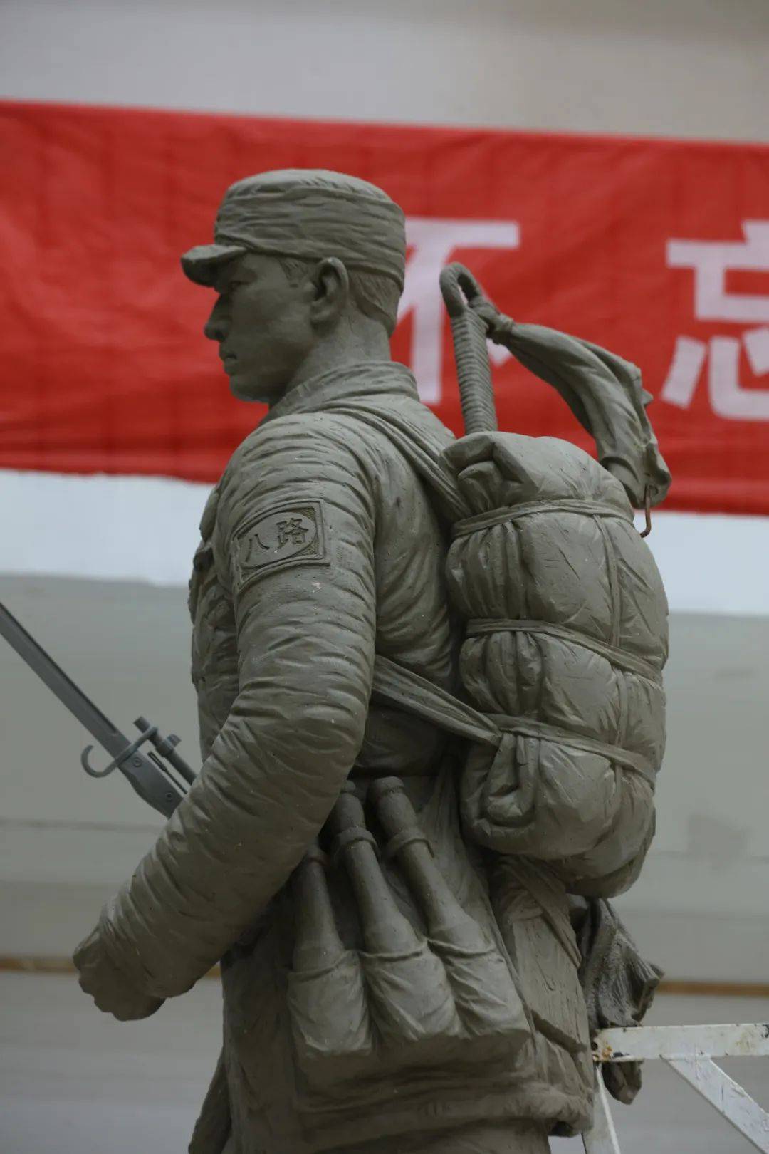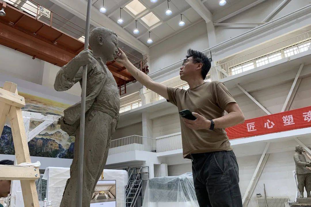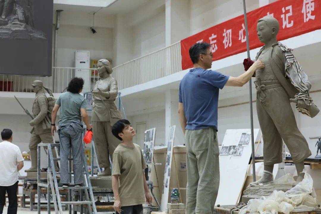 大型组雕《根据地军民》现场完成阶段