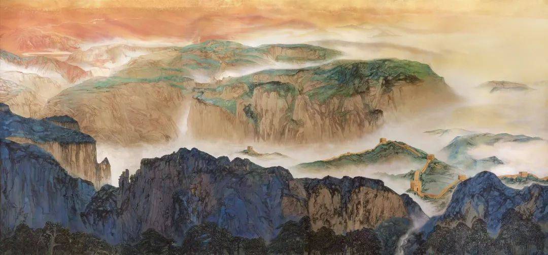 作品以“山河永固”为主题,展现了中华山岳的雄伟壮丽与深厚底蕴。中央美术学院团队选择工笔重彩,运用中国传统技法兼备装饰性与绘画性的特点,呈现出独特风采与强烈的艺术感染力,具有浓烈中国特色的审美倾向。同时融入现代造型审美理念、材料与色彩构成学,既继承传统又推陈出新,形成了崭新的表现力。画面中,巍峨群山象征着祖国大地的坚定与不屈,红色遗址则承载着革命精神与历史的传承,诉说着不朽的奋斗历程。整幅作品通过自然景观与人文元素的融合,深刻表达了山河永固、精神不朽、和平美好的崇高主题。