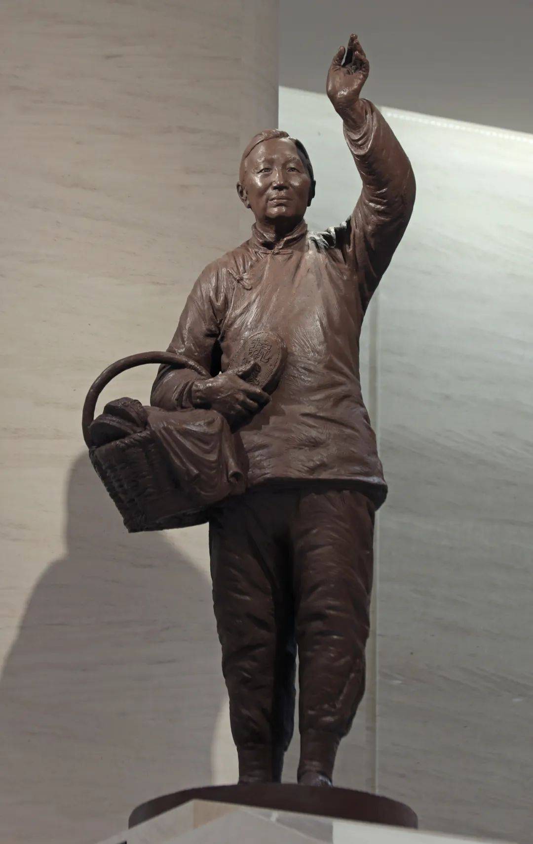人物形象:以戎冠秀、邓玉芬为代表。左手抬起,眺望远方,似在送行,也是期盼。身材矮小,发量略少盘发小缵,削肩、脸部皱纹生动,嘴角略带微笑,眼神充满对战士的关切,仿佛注视自己参军的儿子一样。