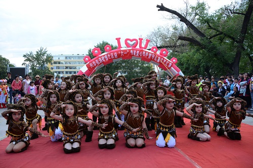 藏品艺术网扎兰屯市6月2日讯 昨天下午,由内蒙古呼伦贝尔扎兰屯市兴华街道迎春社区党总支、妇联、计生协会与国家统计局扎兰屯市调查队联合举办的2016兴华街道迎春社区“庆六一” 关爱留守儿童文艺汇演在天拜山广场精彩上演。