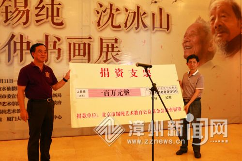 开幕式上,北京市锡纯艺术教育公益基金会向诏安县教育局交付捐款支票。