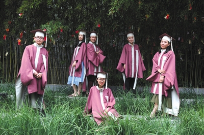 北京服装学院已故副教授马久成是我国这个领域的专家,他曾著有《中外学位服研究》一书,我国多数高校至今采用的学位服都是他在上世纪八十年代的设计。2012年,北服学生李佳佩设计出新款学位服,最大的创新是在领子,它采用了中国传统的立领造型,领口、袖口都增加了白色的衬垫,象征绿色的披肩设计也让学位服整体看起来更活泼。