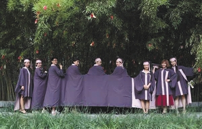 最重要的是,这款学位服还有一衣多穿的特点。“它是可拆解的,背片有一个拉锁可以拉开,可以变成一个收纳袋,把整套学位服轻松收纳起来。发给大家以后,美院的同学们也都特别有创意,愿意做新的尝试”。据说,还有人穿出了背心和超短裙的效果。