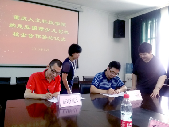 6月23日上午,在重庆人文科技学院行政中心第一会议室举行“重庆人文科技学院与纳尼亚国际少儿艺术校企合作签约仪式”。