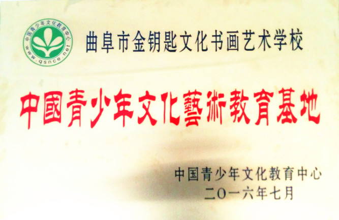 (曲阜市金钥匙文化书画艺术学校获中国青少年文化艺术教育基地荣誉)