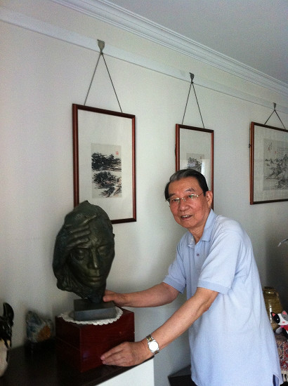 2012年傅敏在北京的家中与傅雷青铜头像