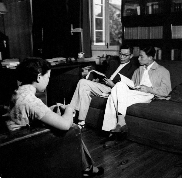 1943年,傅雷夫妇(左)在“黄宾虹八秩诞辰书画展览会”上,傅雷参与举办了该展览。