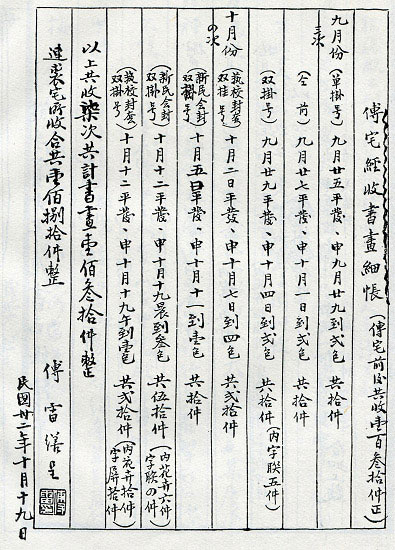 傅雷书“傅宅经收书画细账”