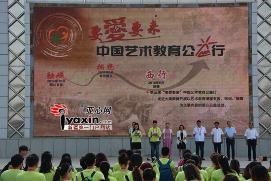 亚心网讯(通讯员 韩璐 报道):9月5日,第三届“要爱要来”中国艺术教育公益行走进乌苏市启动仪式”在乌苏市第一中学召开。乌苏市市委常委、副市长王健,市教育局局长胡永嶷,“要爱要来”中国艺术教育公益行韩晓雷团长,市一中、三中、一小和巴音沟牧场学校的各位校长参加了启动仪式。