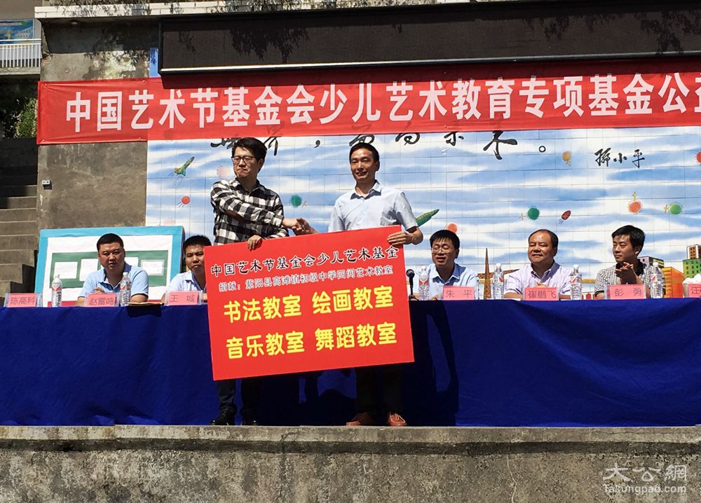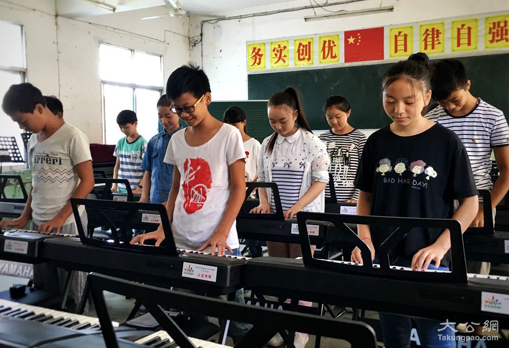 大公网9月10日讯(记者 任丽)国家连片贫困地区孩子们的艺术教育不再望洋兴叹。“电子琴30架、葫芦丝60个、钢琴1架、架子鼓1件……”值第32个教师节之际,中国艺术节基金会少儿艺术教育专项基金筹集25万元教育器材,用于安康紫阳县寄宿制学校高滩镇初级中学,建设音乐、书法、美术、舞蹈4间艺术教室。