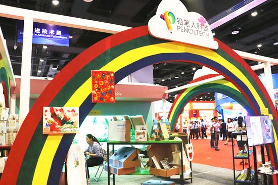 铅笔人科技举办的“智绘艺术+”推介会展示的儿童O2O艺术教育。据了解,这是一家专为3-9岁儿童原创研发、集合儿童科技以及动画教学的创意绘画机构,培养儿童艺术想象力,开发智力潜能。 据介绍,铅笔人首先把虚拟情景技术引入艺术教育领域,自主研发了沉浸式情景体验的教学模式,集合动画、数字媒体、摄影、音乐等于一体。杨先生表示说:“孩子在父母以及老师的陪伴下一起互动,让孩子的画作,以真实的形态呈现于动画内容里。目前有许多家长都将孩子的作品上传到我们公众平台,我们将动态视频发送回去或者直接来到门店进行展示体验。“