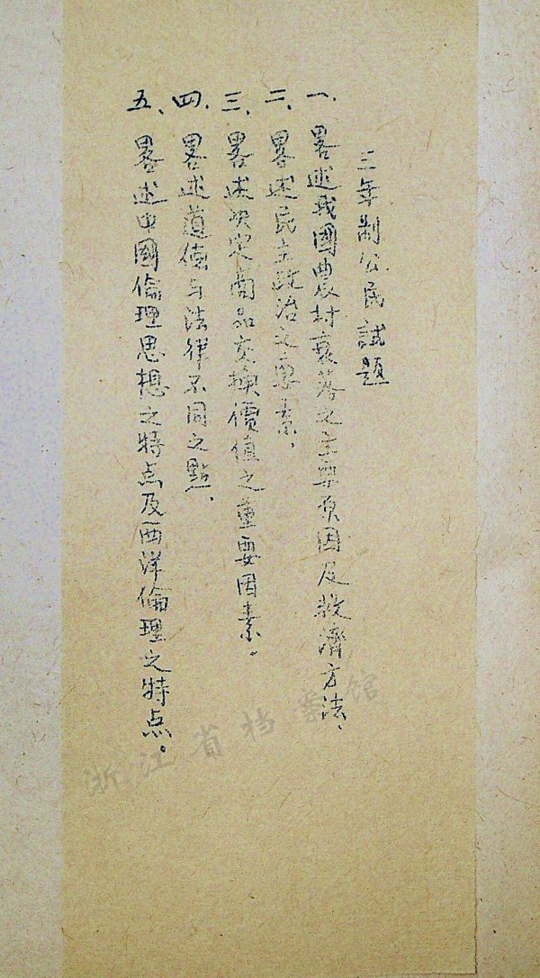 1946年公民试题。浙江省档案馆供图