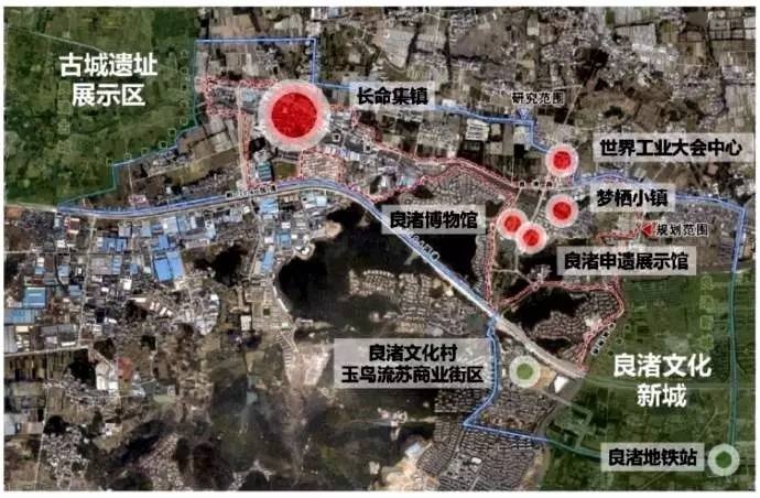 3.85平方公里的范围,包括大雄山、良渚港,长命村和小山桥村两个历史村落,良渚博物馆、良渚申遗展示馆、梦栖小镇、工业设计中心等重要城市资源。