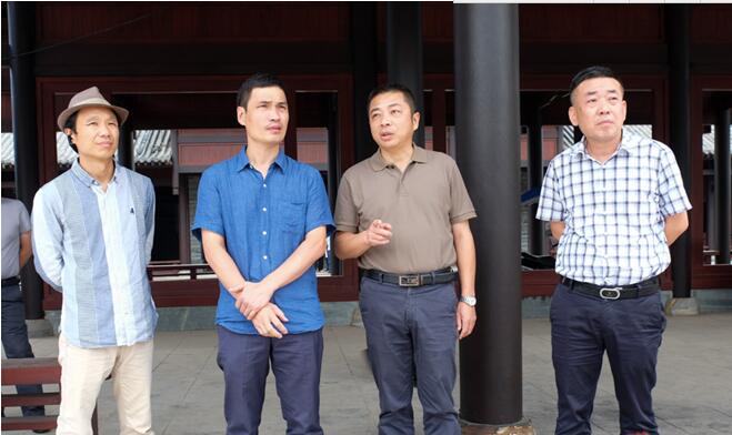 陈汉(左二)、廖志明(左一)在朱平波(右二)陪同下考察屈子书院