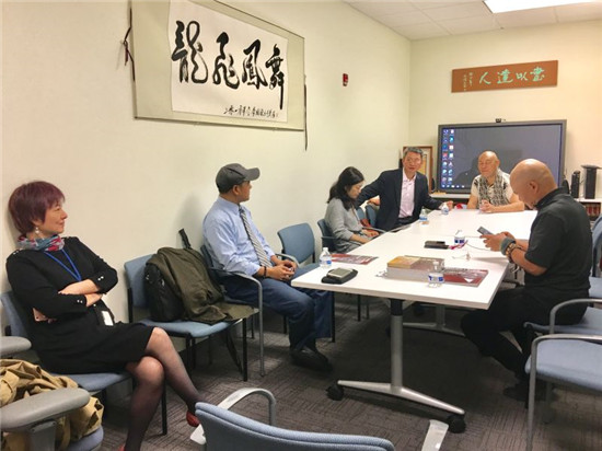 讲座从12点15分开始,至1点30分结束。会议由联合国总部高级官员高级翻译、思想者、联合国太极文化学会会长、联合国总部中文翻译处中国文化与翻译沙龙主持人曹国忠先生主持,参加嘉宾有广州美术学院的油画家雷振华教授与旅居纽约的青年作家中国作协会员柳营女士,八卦掌传人联合国太极文化学会主教练麻林城、联合国总部官员陈峰、联合国官员高级翻译曹樱等,在联合国总部办公大楼4楼会议室,共同分享了丁正耕先生对中国文化国际范式的精彩观点。中文翻译处处长陈忠良先生因参加联大会议,遗憾未能出席,联合国总部的诗人唐晓铨先生因值夜班,也遗憾未能出席。