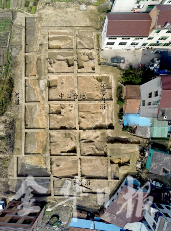 浙江省第三批省级考古遗址公园日前公布,本报多次报道的义乌桥头遗址、龙游荷花山遗址同时上榜。继浦江上山遗址、仙居下汤遗址后,上山文化遗址入选省级考古遗址公园增至4处。 上榜遗址本报多次报道 桥头遗址是浙江省发现的早期19处新石器时代遗址之一, 属上山文化中晚期,距今9000年左右。2018年12月31日,在桥头遗址还没有“显山露水”时,本报即在显著位置,以《9000年前的义乌写下“世界之最”》为题,对桥头遗址进行深入报道。2019年8月13日,在桥头遗址重大考古突破,发现迄今为止浙江最早的墓葬后,本报又及时刊发详细报道《你好,8000岁的浙江人》。之后每一个重要节点,记者密切关注,先后推出多篇报道。 桥头遗址-桥头环壕遗址平面图(搭建发掘区保护棚前航拍)