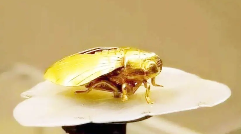 这只金蝉簪即便在地下埋了几百年,但在刚刚出土的时候颜色还是金灿灿的,质地更是无比的考究,金蝉的每一个细节都做到栩栩如生,和玉叶链接的部分更是非常精巧。叶片制作的也比较精美,没有一点的瑕疵,由此也可以看出我国古代工艺的先进水平。江苏发现这个1男4女合葬墓中出土一“金蝉”,非常具有历史价值,其价值也是不菲的,专家估价9个亿。
